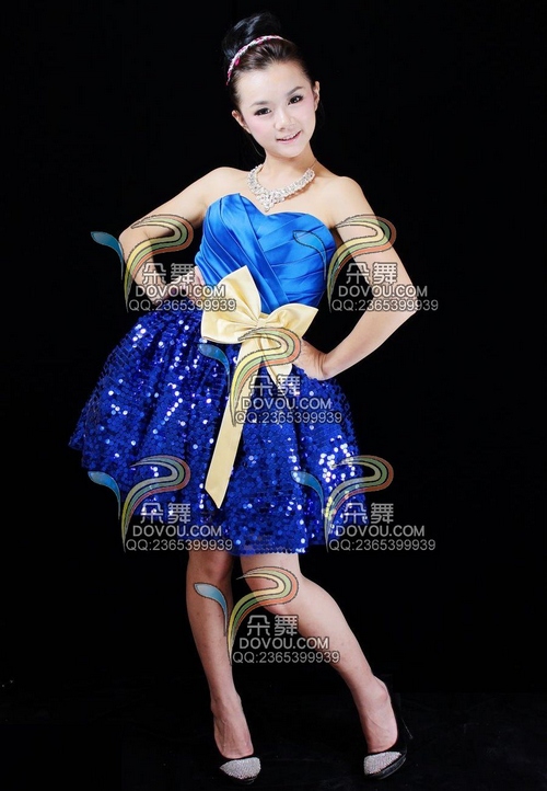 简单描述: 蓝色亮片短裙主持演唱服,单套价格与批量价格不同,请注意!