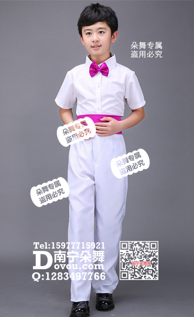 白短衬衣白长裤紫色腰套装男童服a_EX002