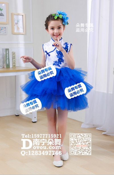 宝蓝旗袍纱裙女童服_EX031