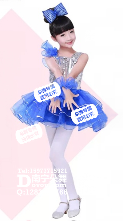 宝蓝银色现代舞女童服_EX043