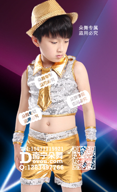 银衣黄短裤现代舞男童服_EX184