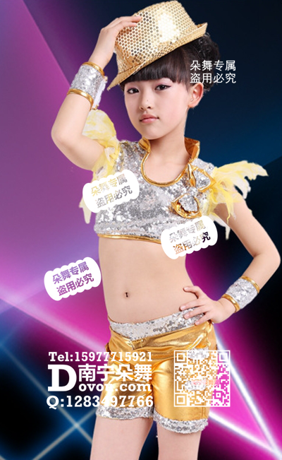 银衣黄短裤现代舞女童服_EX185