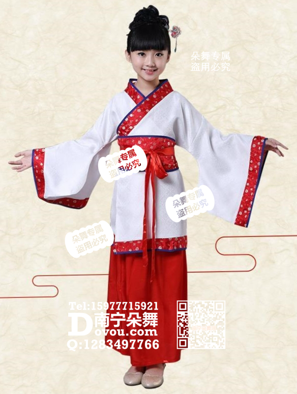 红边缎领白锦面古装汉服女童服_EM076