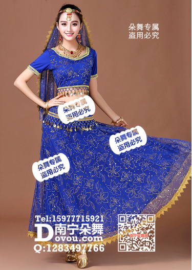 蓝红傣族舞蹈服