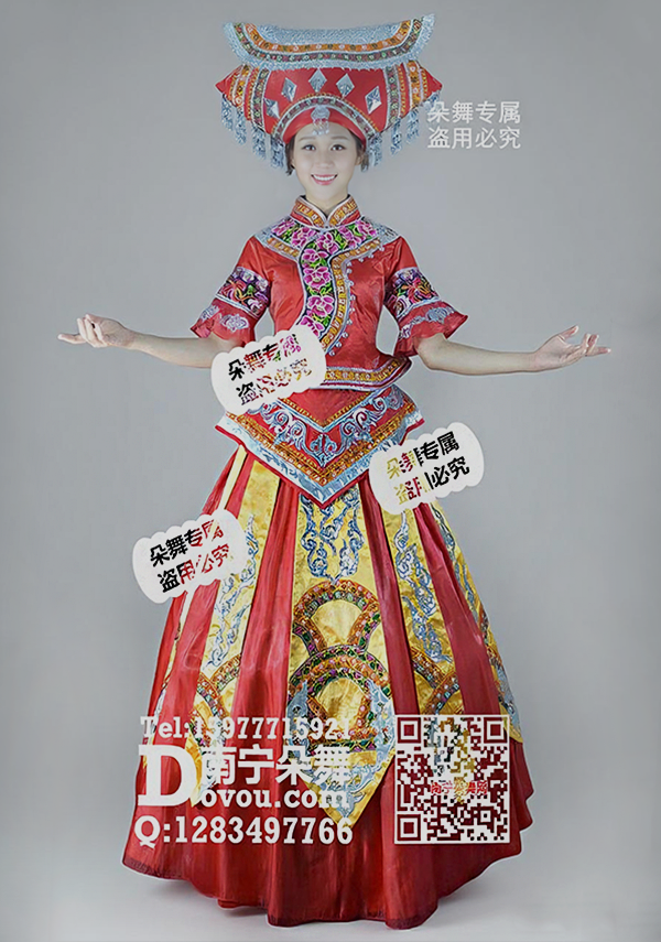 大红翘衣角橘红纱裙壮族盛装