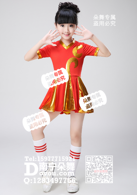 红色连身金边中袖儿童啦啦操短裙