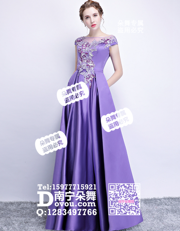 紫色圆领绣花长礼服
