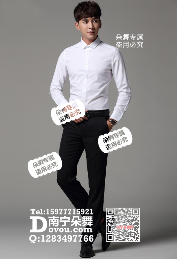 白色修身款长袖男衬衣