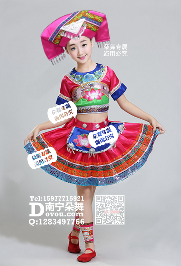 玫红荷花壮族短裙
