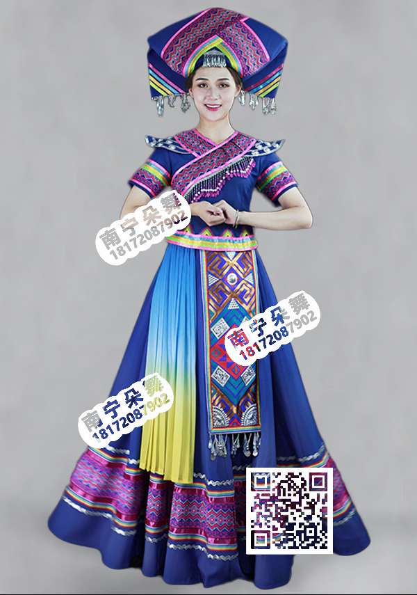 宝蓝蓝黄渐变飘带飞肩壮族盛装