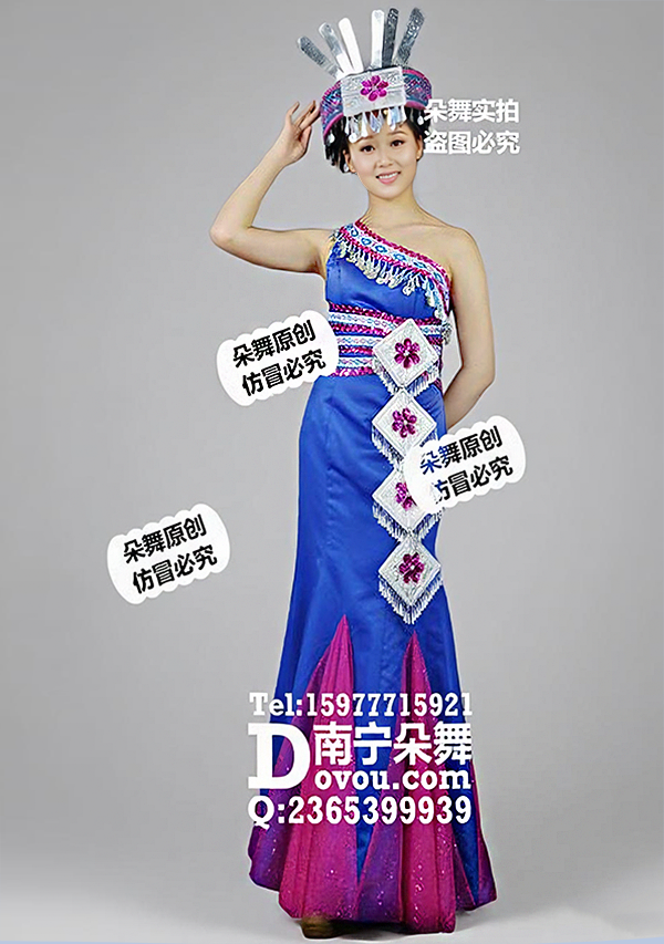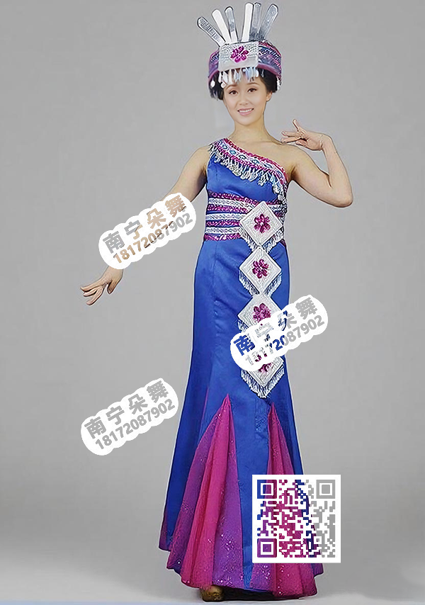 宝蓝瑶族斜肩鱼尾盛装