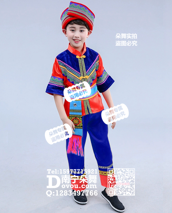 红衣蓝裤短袖壮族男童
