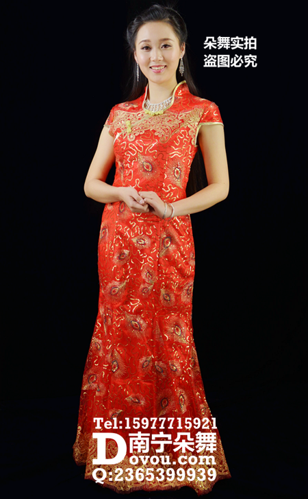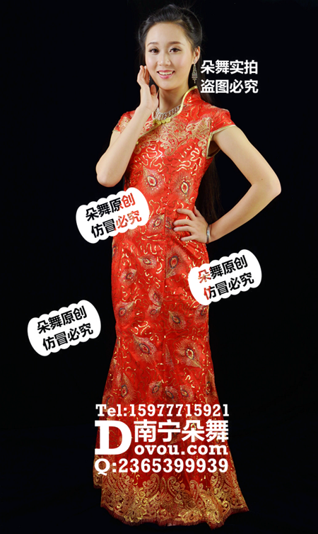 大红孔雀百尾旗袍