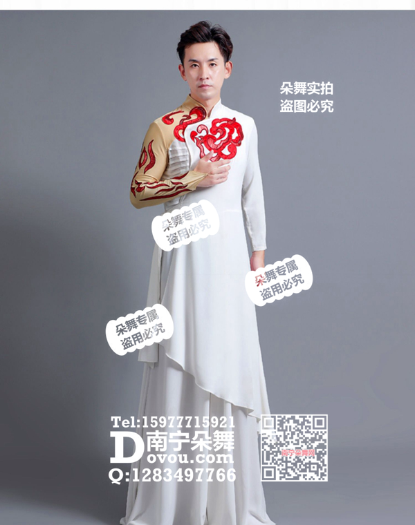 简单描述: 白色长衣红花飘逸男装