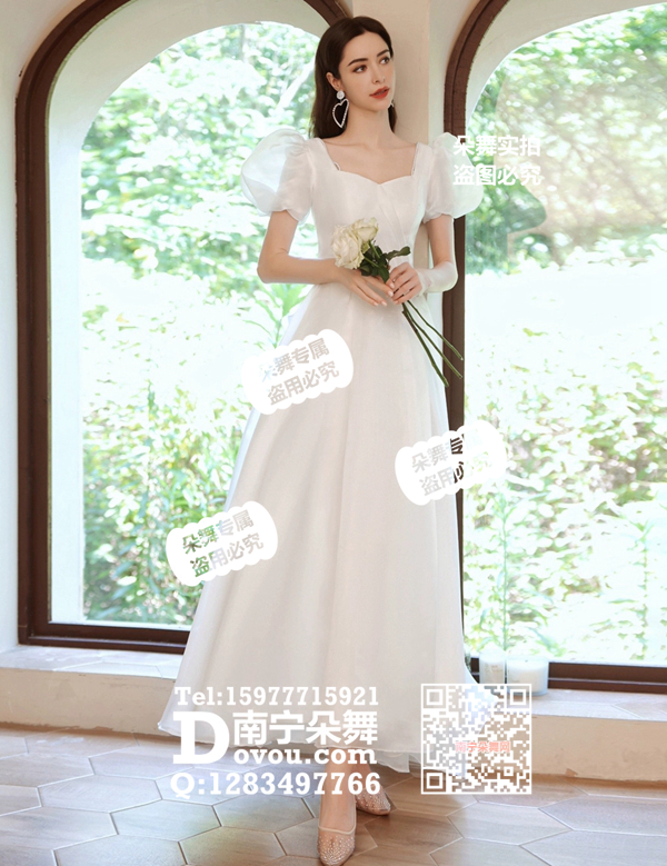 白色灯笼袖长礼服
