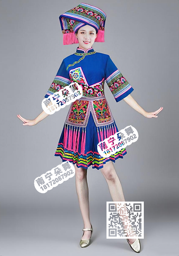 适合题材 蓝色三角绣花壮族短裙