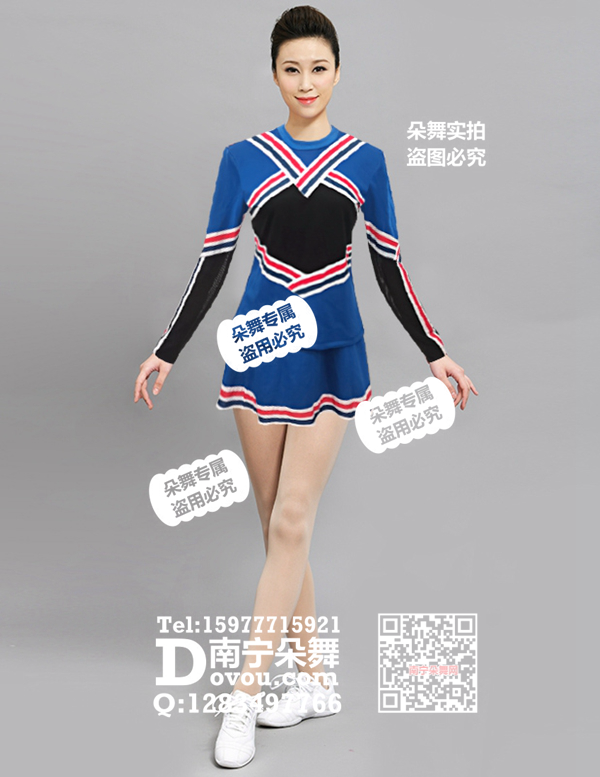 简单描述: 蓝色红蓝条纹长袖体操啦啦操短裙
