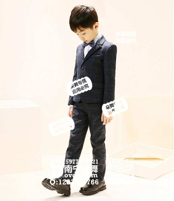 简单描述: 蓝黑格子男童西装