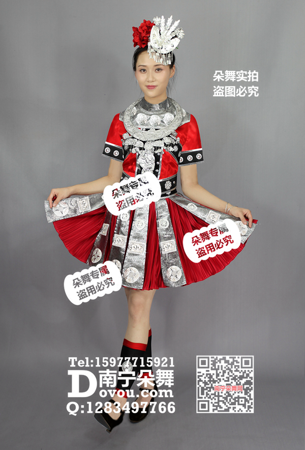 适合题材 红色黑边银片短袖短裙民族苗族