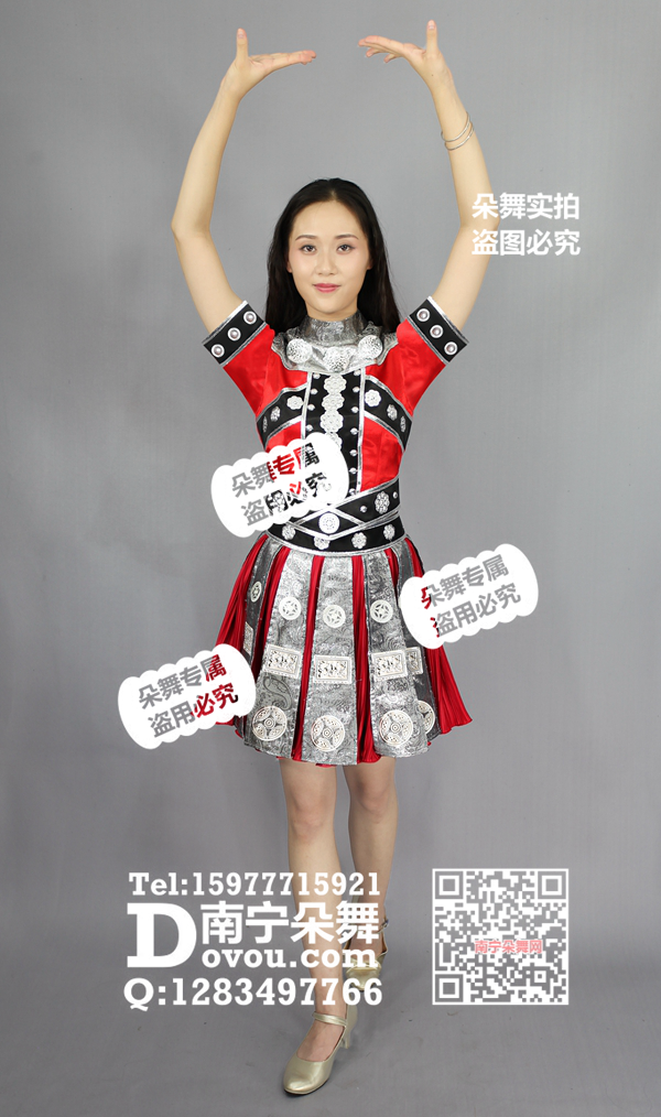 简单描述: 红色黑边银片短袖短裙民族佤族