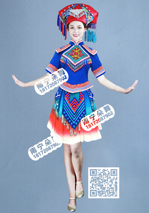简单描述: 宝蓝红蓝过渡裙壮族短裙