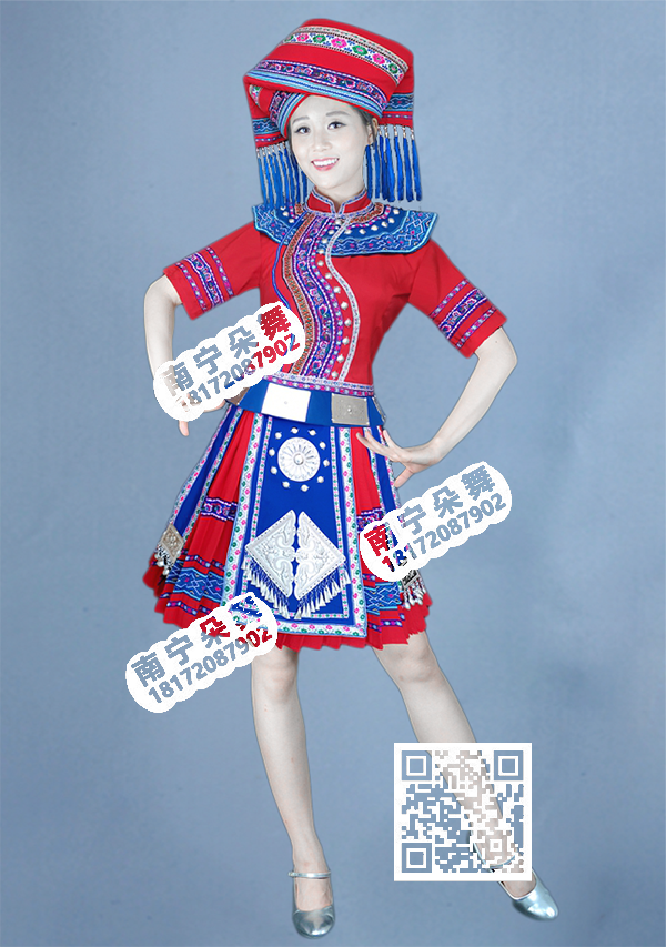 简单描述: 红蓝飞肩壮族短裙