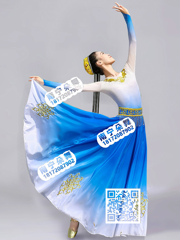 简单描述: 蓝白渐变新疆长裙