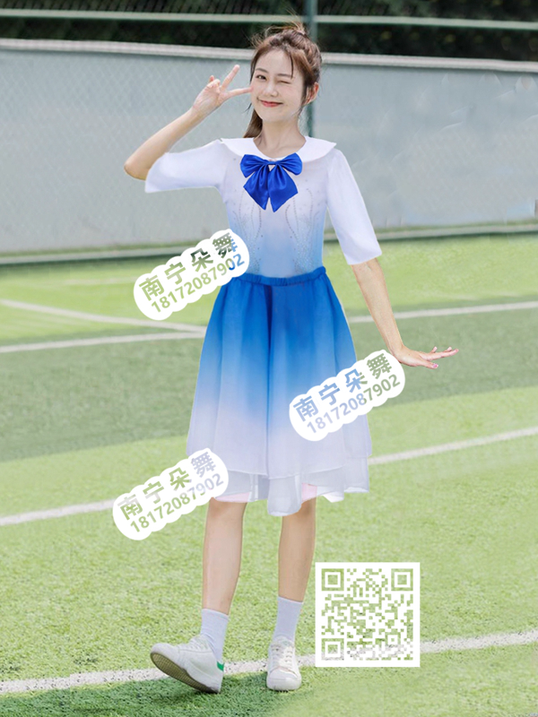 简单描述: 蓝白渐变中袖烫钻雪纺裙