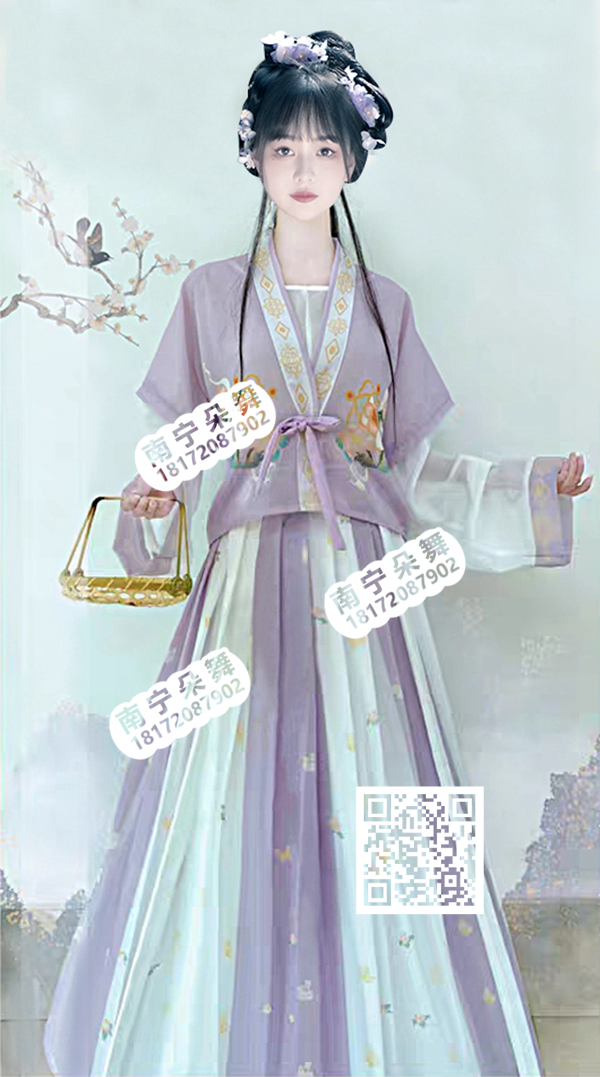 紫白黄花半袖对襟汉服