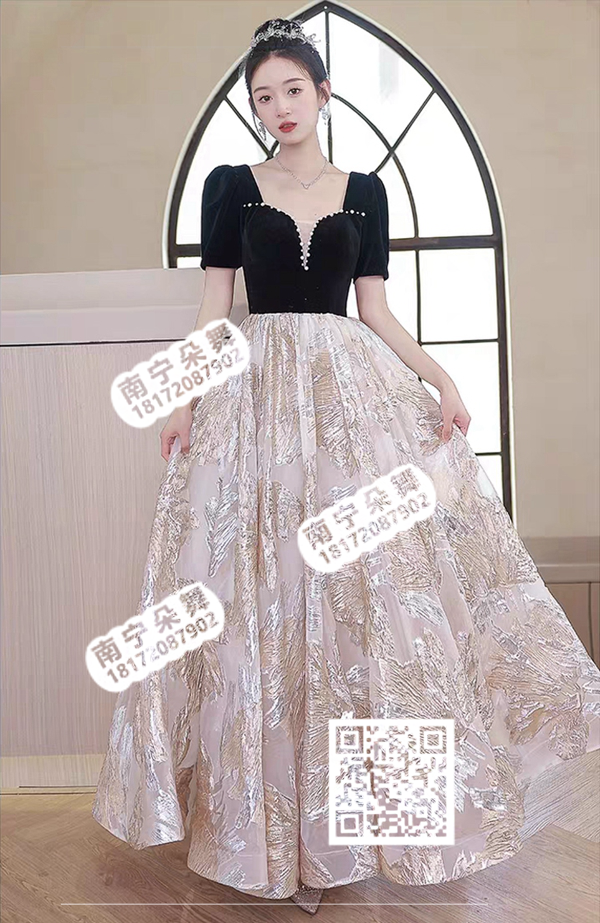 黑衣金裙长礼服