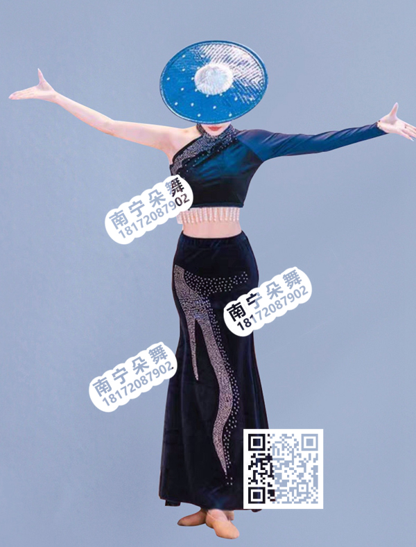 墨绿渐变森灵珠花挂脖无袖傣族女服