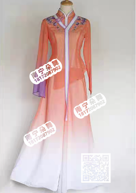 粉绿渐变飘逸纱袖春暖意浓古典女装