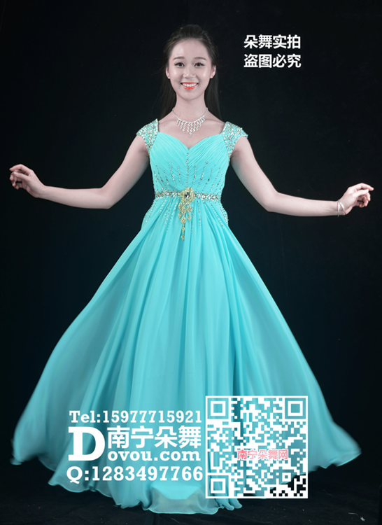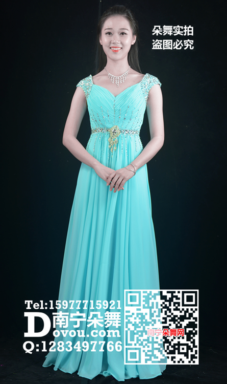简单描述: 天蓝雪纺亮钻长礼服