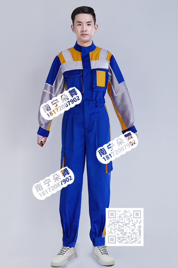 简单描述: 宝蓝银黄边工装男装