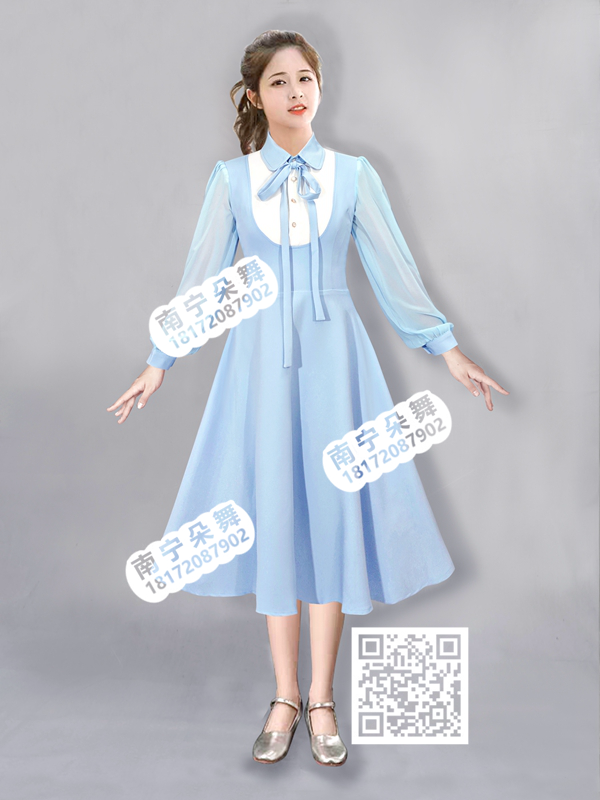 简单描述: 天蓝假两件纱袖连衣裙