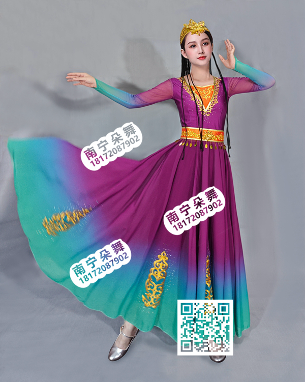 简单描述: 紫绿渐变橘纹新疆大摆裙