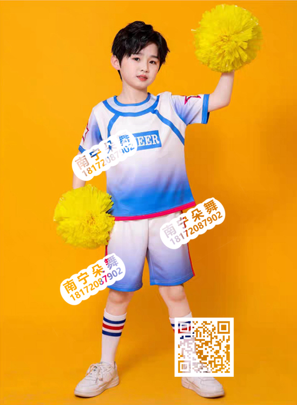 玫白蓝边五星短袖啦啦操男童短裤装