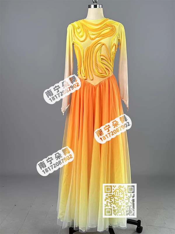 黄色渐变星空现代舞女套装