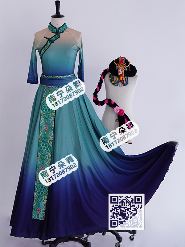 蓝紫白渐变长袖大摆裙新疆回族女民族