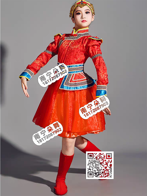 简单描述: 红短裙宝蓝腰女童蒙古短裙