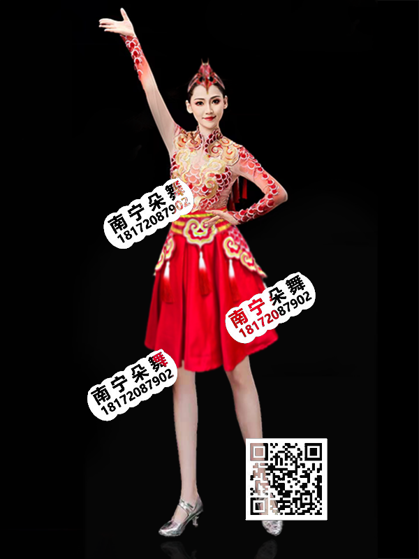 简单描述: 金红龙鳞衣红女短裙祥云衣收脚男红裤装1