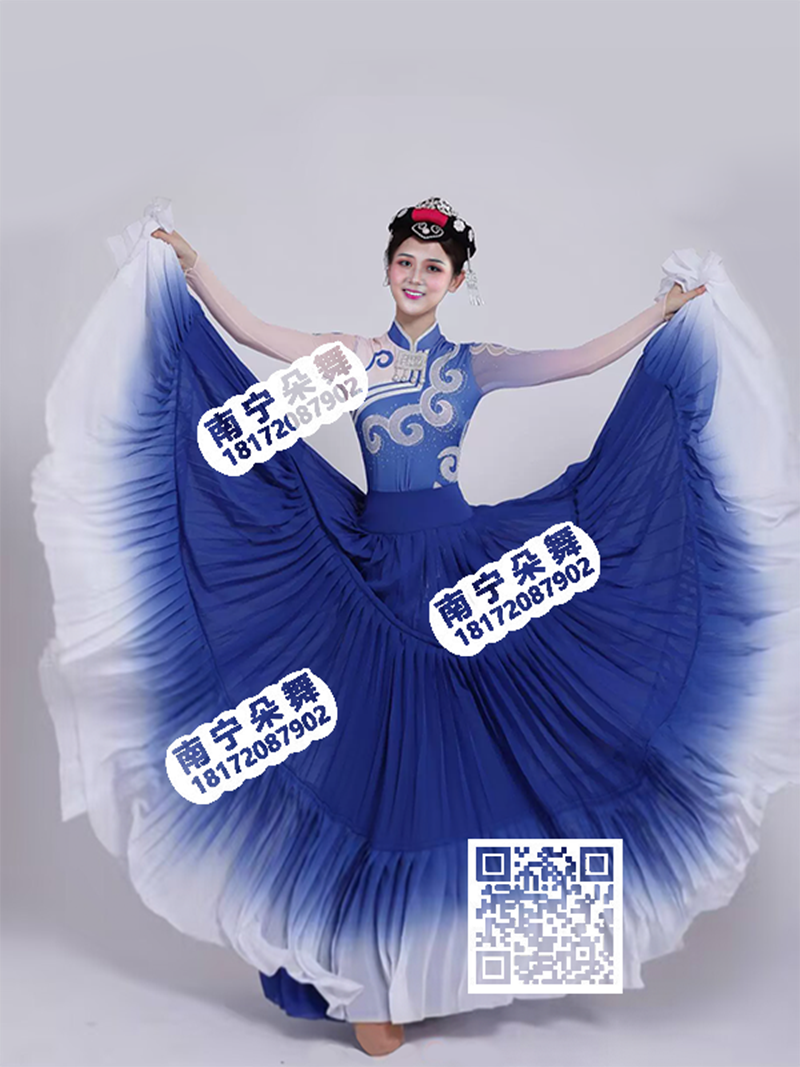 宝蓝渐变白大摆百褶裙云水伊人彝族