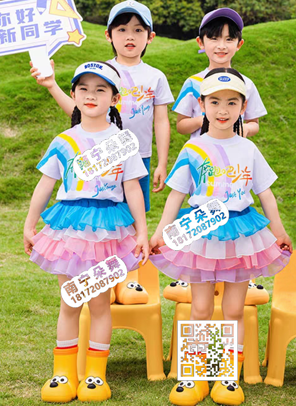 白衬衫红百褶裙红裤男女童装