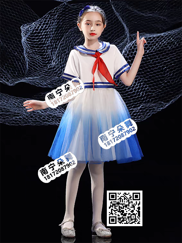 简单描述: 白色圆领水手服渐变纱裙