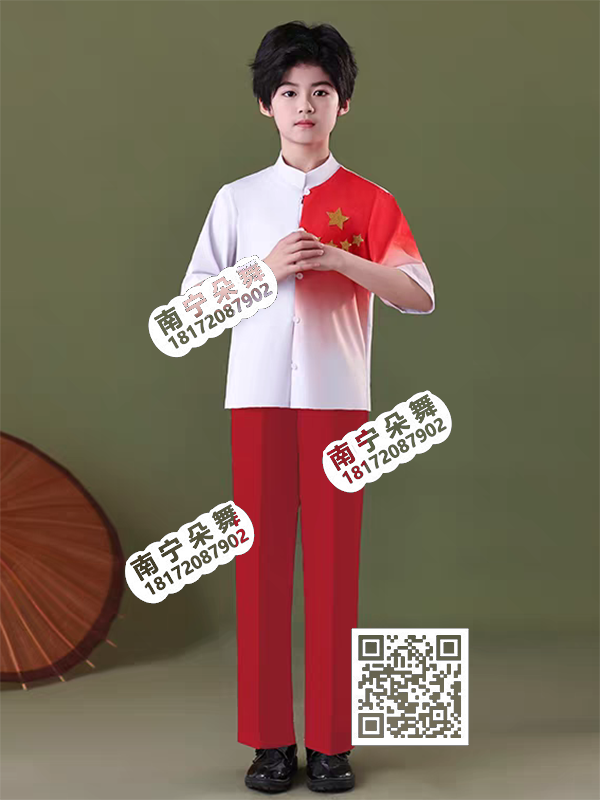 白衣红旗红裤国风男童