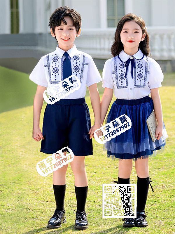 白衬衫红百褶裙红裤男女童装
