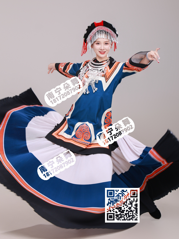 蓝白橙黑四色布衣彝族大摆裙