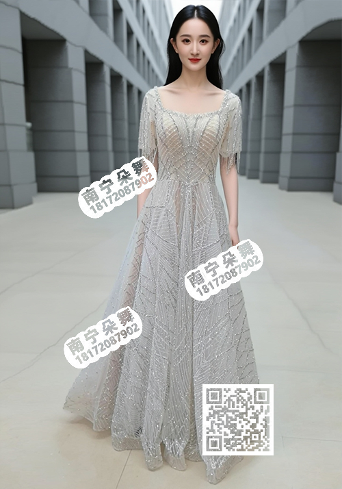 重工灰色飞天多钻荷叶纱长礼服