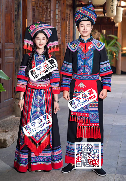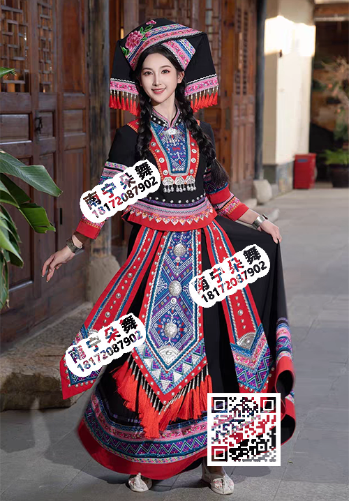 黑红壮锦刺绣吊须女壮族