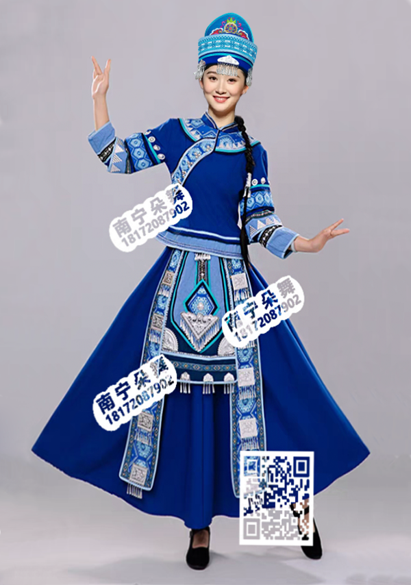 蓝色民族边长方吊腰仡佬族族女衣裙